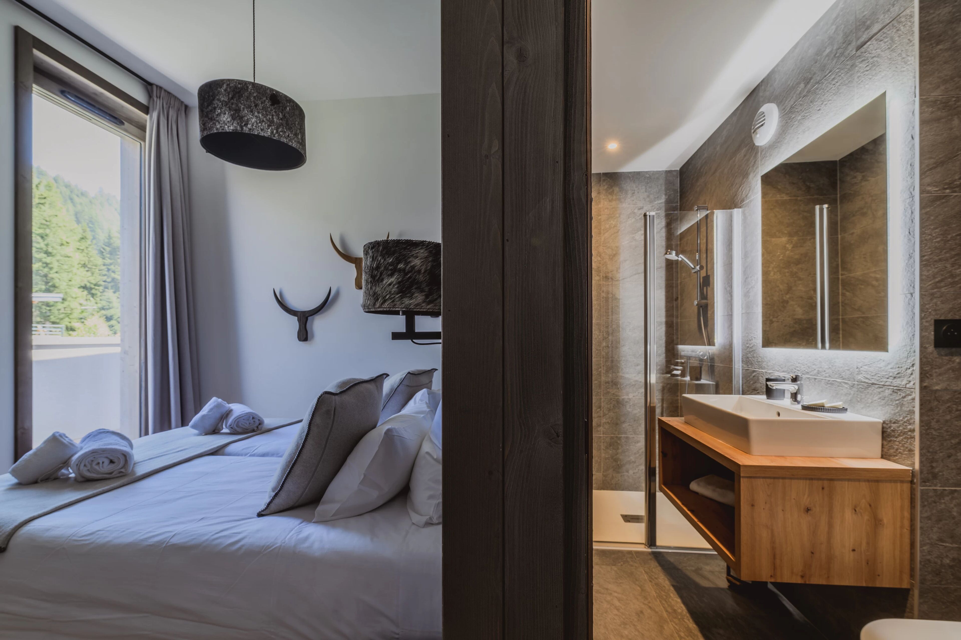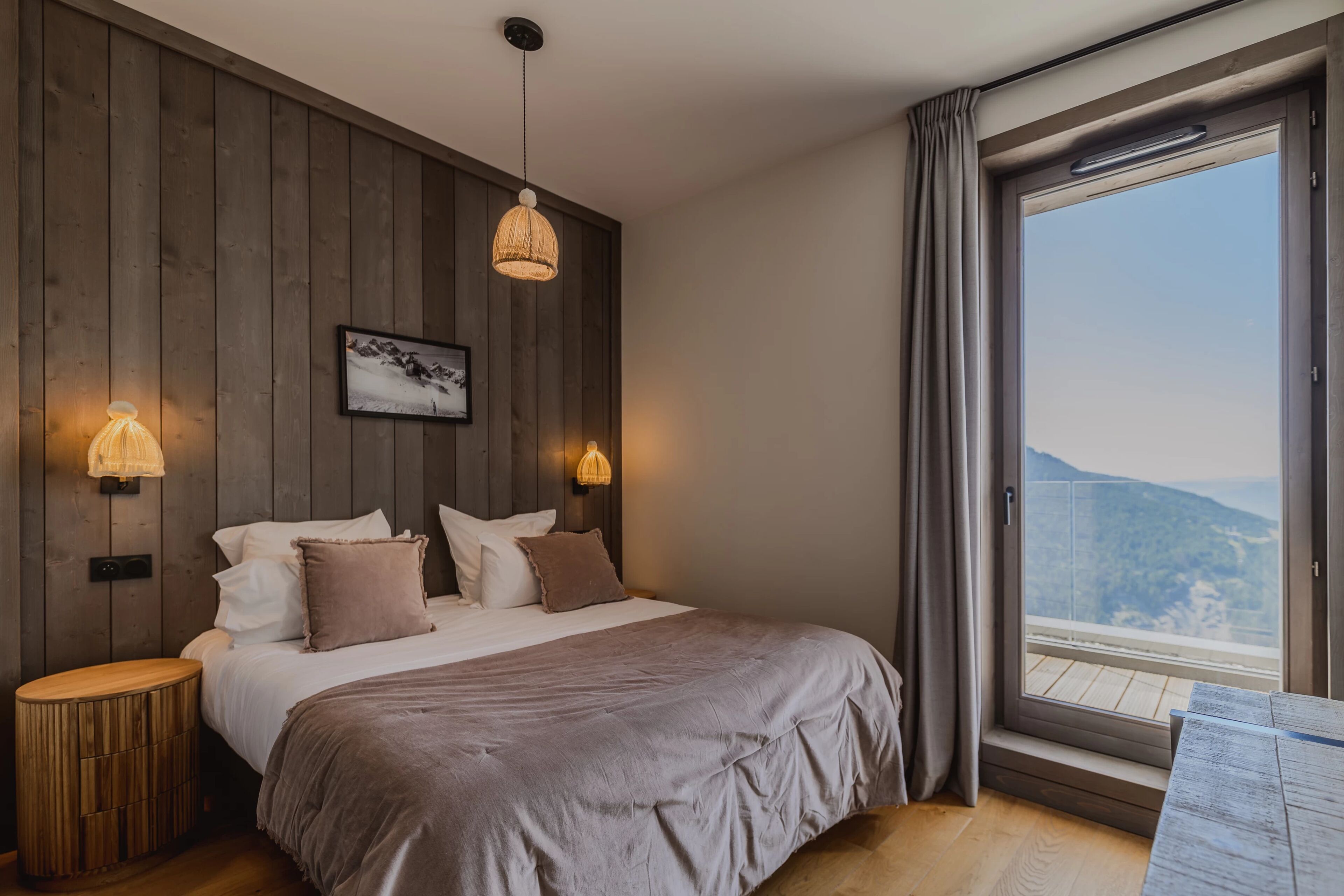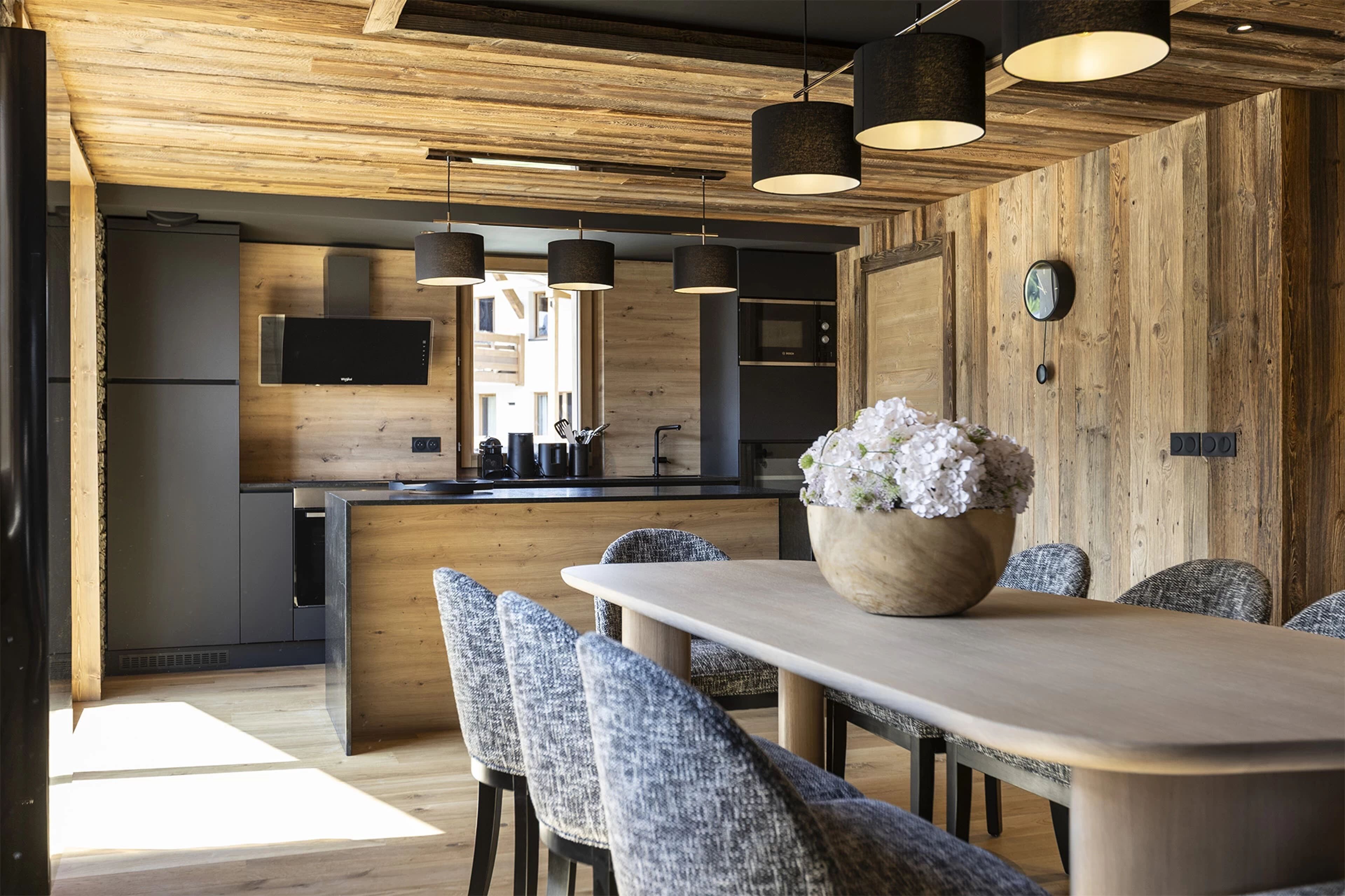 In Megève, with a private sauna, crackling fireplace, and ski locker in your accommodation, every detail has been designed to create a warm and elegant atmosphere. The refined decor and cozy ambiance invite you to savor every moment. This experience is available in a luxurious three-level chalet or a family duplex.